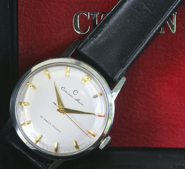 I chose to feature this one today because I found just yesterday that a French watch company – ‘Ultra’ – has recently been resurrected…..what’s that got to do with an early Japanese automatic I hear you ask! When I researched the Auto, and particularly the self-winding mechanism, I discovered the same design that Citizen used had been designed and patented by a Frenchman, Gerard Langel, some years earlier – he also patented an alternative ‘magic lever’ design, the type used by Seiko in their early automatics. I concluded that Citizen must have acquired the design to enable production of its first automatic in 1958 but I wasn’t able to find proof of this at the time – I researched this in late 2013/early 2014. But now I have been able to confirm what I thought – the new Ultra company, which has launched homage pieces to their original ‘Superautomatic’ model, refers to the design being sold to Citizen on their web site home page: